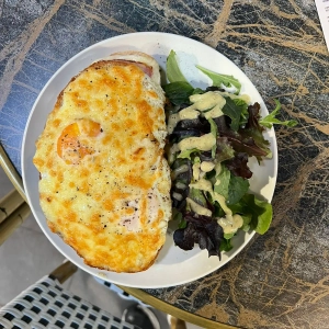 The famous Croque Monsieur that is a hot sandwich with ham-cheese and béchamel. If you add 2 eggs you have the famous Croque Madame